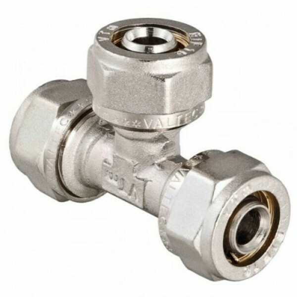 Тройник 26 Valtec, обжимной фитинг предназначен для соединения трубопроводов из металлолимерных труб (PEX-AL-PEX, PE-AL-PE, PEX-AL-PE, PERT-AL-PE и пр.), в системах горячего водоснабжения, отопления и технологических трубопроводов траспортирующих жидкости, не агрессивные к материалам труб и фитингов.