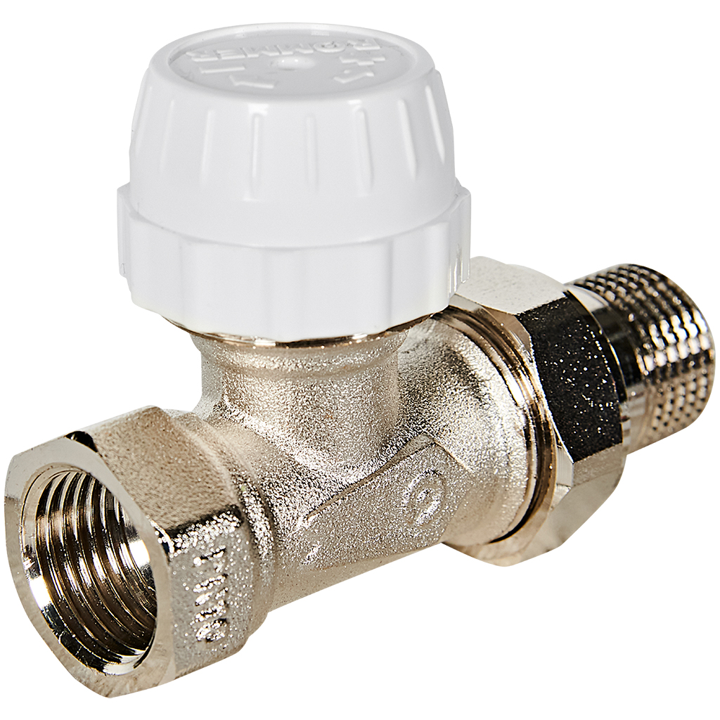 Прямая конструкция обеспечивает удобное линейное подключение радиатора к трубопроводу и применяется при стандартных схемах монтажа. Термоклапан используется совместно с термостатической головкой (приобретается отдельно), которая реагирует на изменения температуры воздуха и автоматически изменяет расход теплоносителя.