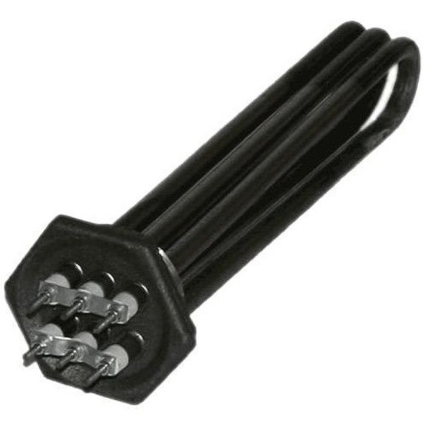 Блок ТЭН представляет собой группу трубчатых ТЭН (один или несколько) на фланце из стали. Фланец с одной стороны имеет резьбу (стандартный - 2.5"), а с обратной стороны - шестигранник под ключ. Номинальная мощность данного ТЭНБ - 9 кВт. Используется в воде.
