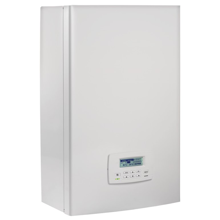 Управление котлом основано на современном уникальном погодозависимом алгоритме, настройка может происходить по температуре теплоносителя, комнатной и уличной температурам. Есть возможность программирования суточной и недельной температуры воздуха в отапливаемом помещении. Котел экономично расходует ресурс, и это касается как электроэнергии, так и ресурса самого котла (ротация ТЭН, силовых реле и контакторов).