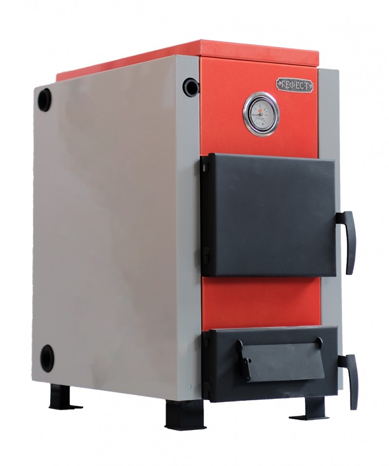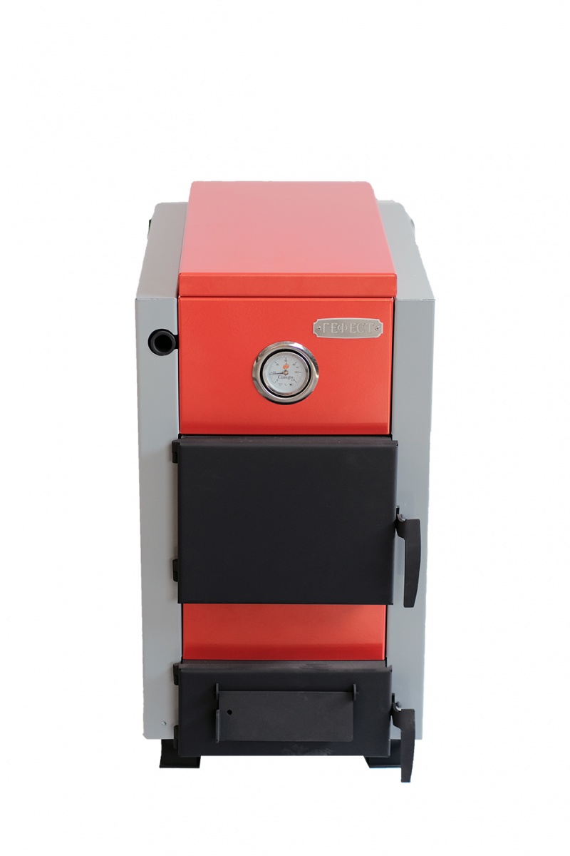 Котел «Гефест» 15 кВт можно топить дровами, углем и прессованными брикетами. Принцип действия – передача тепловой энергии, высвобождаемой при сжигании топлива, теплоносителю – воде.