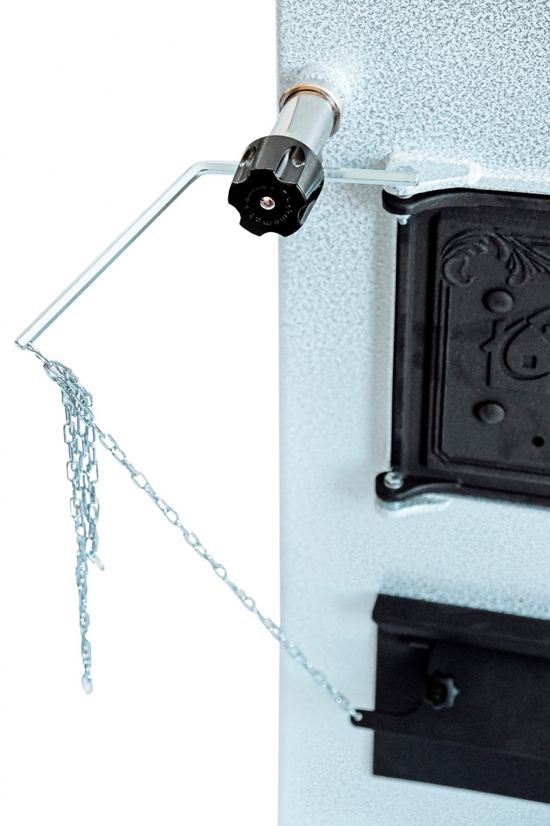 Для автоматического управления подачей воздуха в камеру сгорания в твердотопливном котле «Сибирь» КВО 15 кВт имеется возможность установки энергонезависимого терморегулятора.