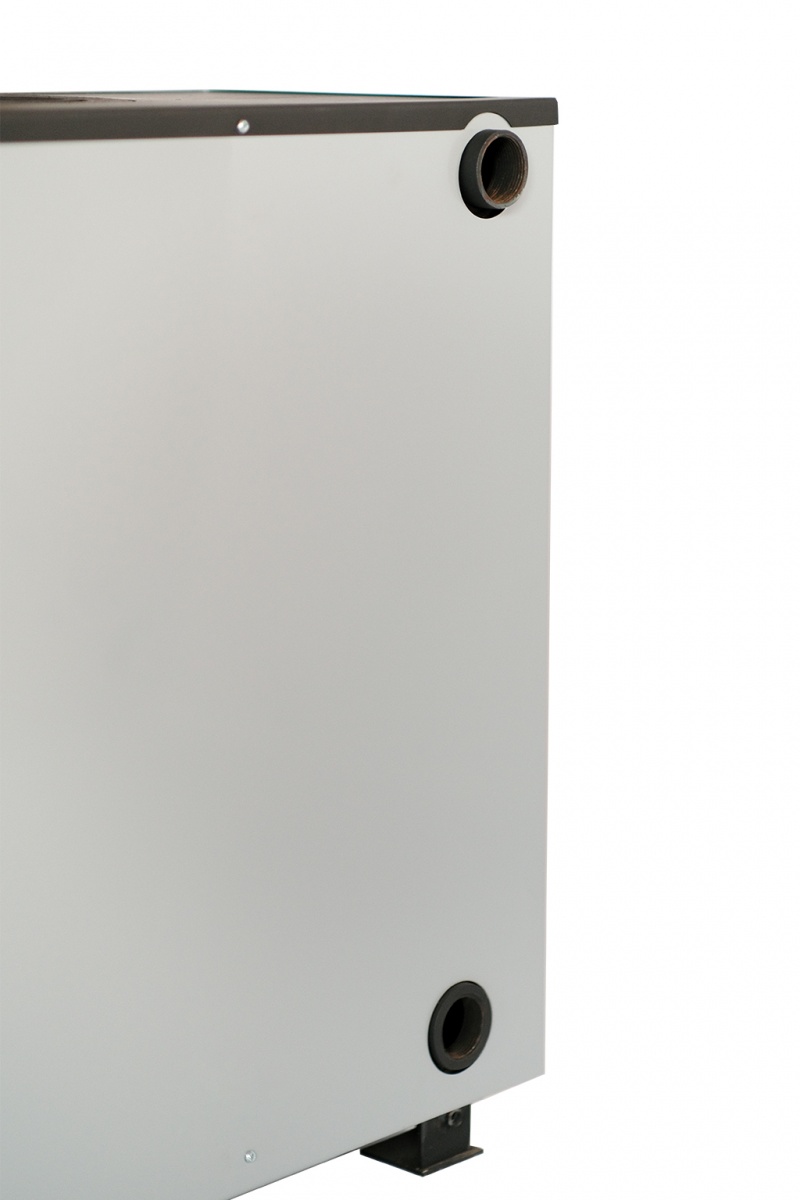 Котел "Сириус" 15 кВт изготовлен из стали Ст.3 СП5 толщиной 3 мм. Снаружи котел облицован металлическим кожухом, окрашенным полимерной краской. Варочная поверхность выполнена по запатентованной технологии из стали толщиной 12 мм, что делает ее использование долговечным и практичным. Расположенное с оборотной стороны варочной плиты кольцо усиления защищает ее от деформации при перепадах температур. Наличие верхнего отверстия в плите, закрытого чугунными конфорками позволяет производить через него загрузку угля. Глубина топочной камеры 450 мм, объем водяного контура 44 литра.