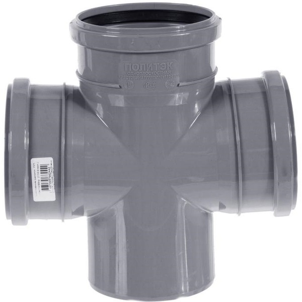 Крестовина канализационная, применяется в системах канализации для подключения дополнительных коммуникационных ответвлений от стояка системы и стыковки труб между собой.