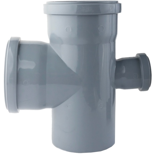 Крестовина канализационная, применяется в системах канализации для подключения дополнительных коммуникационных ответвлений от стояка системы и стыковки труб между собой.