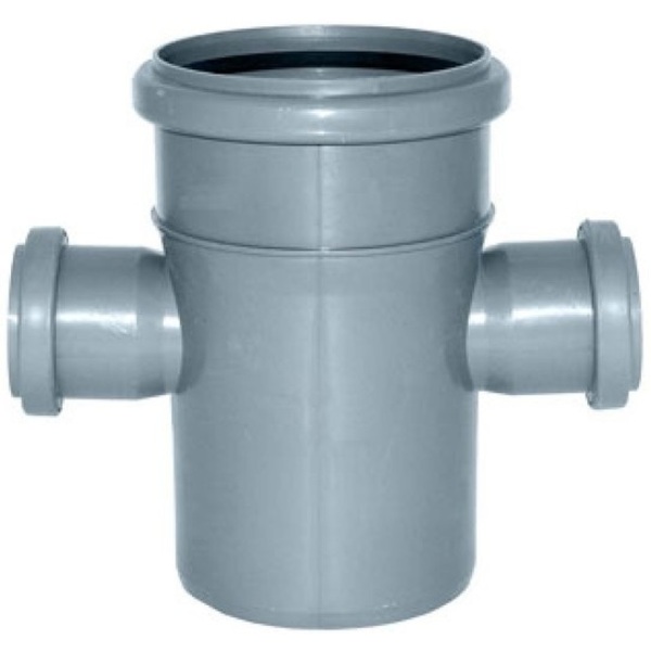 Крестовина канализационная, применяется в системах канализации для подключения дополнительных коммуникационных ответвлений от стояка системы и стыковки труб между собой.