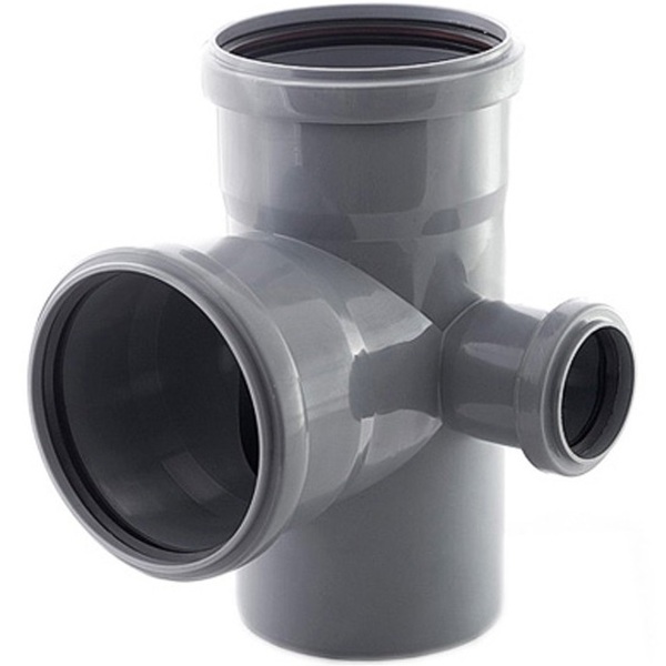 Крестовина канализационная, применяется в системах канализации для подключения дополнительных коммуникационных ответвлений от стояка системы и стыковки труб между собой.