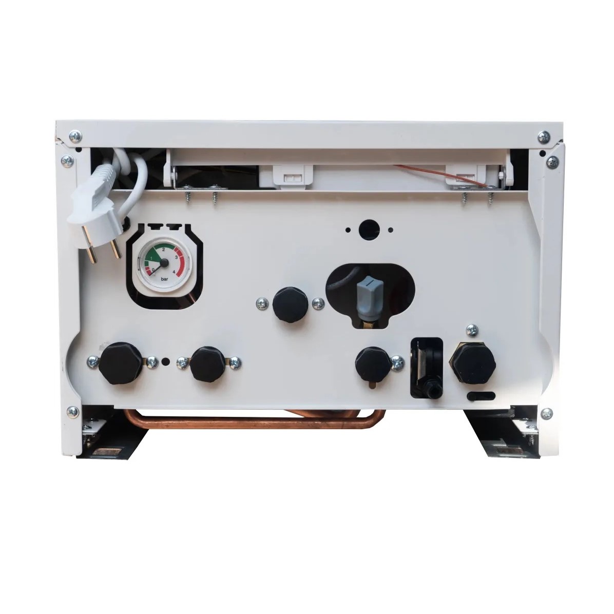 - Система защиты теплообменника от перегрева: водяной насос продолжает работать в течении приблизительно 1 минуты после отключения ГВС.