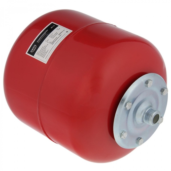 Внутреннее пространство всех элементов системы отопления (трубопроводов, отопительных приборов, арматуры, оборудования и т. д.) заполнено водой. Получающийся при заполнении объём воды в процессе эксплуатации системы претерпевает изменения: при повышении температуры воды он увеличивается, при понижении — уменьшается. Соответственно изменяется внутреннее давление. Однако эти изменения не должны отражаться на работоспособности системы отопления и, прежде всего, не должны приводить к превышению предела прочности любых её элементов. Поэтому в систему водяного отопления вводится дополнительный элемент — расширительный бак Oasis WRV 12 литров.