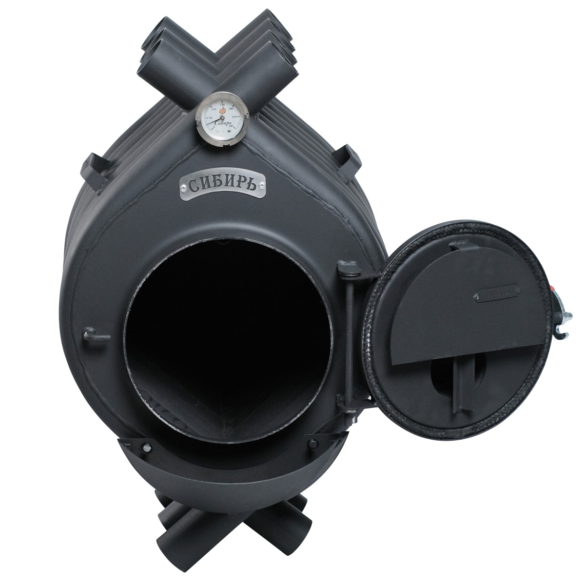 Воздухогрейная печь "Сибирь" состоит из 7 металлических труб марки Ст.3 СП5, которые обеспечивают естественную конвекцию в помещении, благодаря чему происходит быстрое нагревание воздуха и его плавное распределение по всему объему отапливаемого помещения.