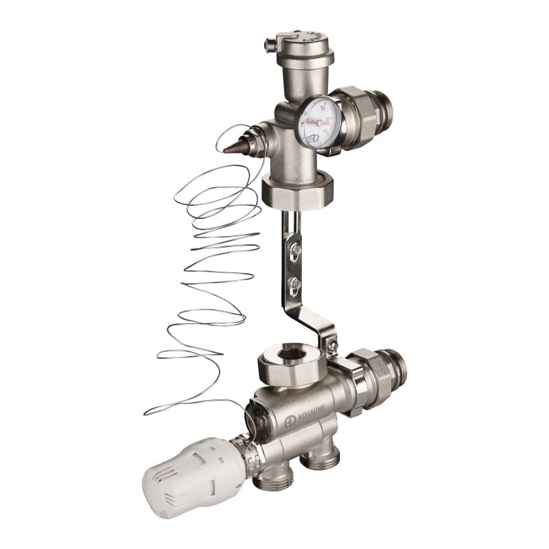 Насосно-смесительный узел AQUALINK 2730 используется при монтаже системы "теплый пол", а также систем радиаторного отопления и предназначен для создания низкотемпературного контура отопления с автоматической регулировкой температуры относительно заданной.