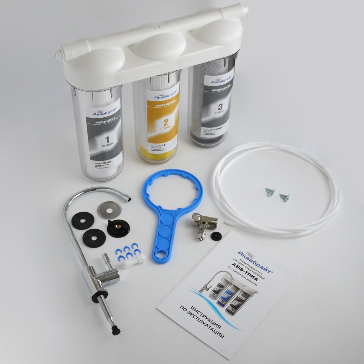Трёхступенчатая система очистки воды с отдельным краном АБФ-ТРИА-УМЯГЧЕНИЕ — бытовая система фильтрации, предназначенная для глубокой очистки и снижения жёсткости холодной водопроводной воды. Устанавливается под кухонную мойку.