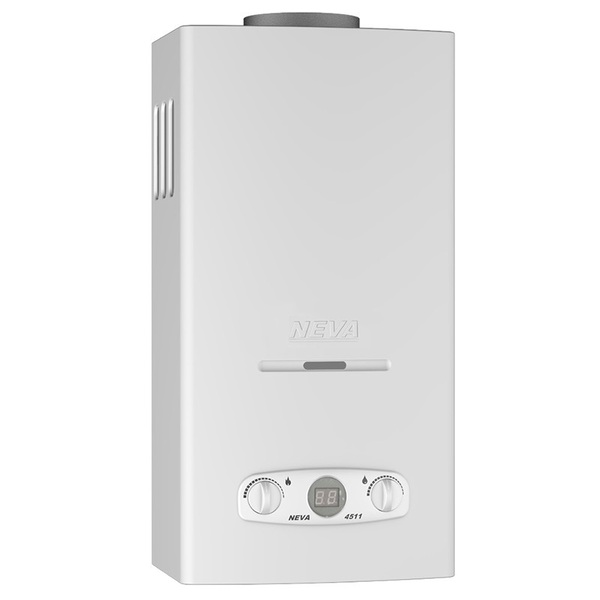 Водонагреватель газовые проточный Neva 4511 - предназначен для нагревания воды, используемой в санитарных целях, в квартирах и жилых домах. Водонагреватель изготовлен по ТУ 4858-008-26985921-2008 (ГОСТ 31856-2012, ТР ТС 016/2011). Специальные конструкции и инновационный способ производства обеспечивают как долговечность работы теплообменника, так и всего водонагревателя NEVA 4511, защищая от влияния природных факторов.